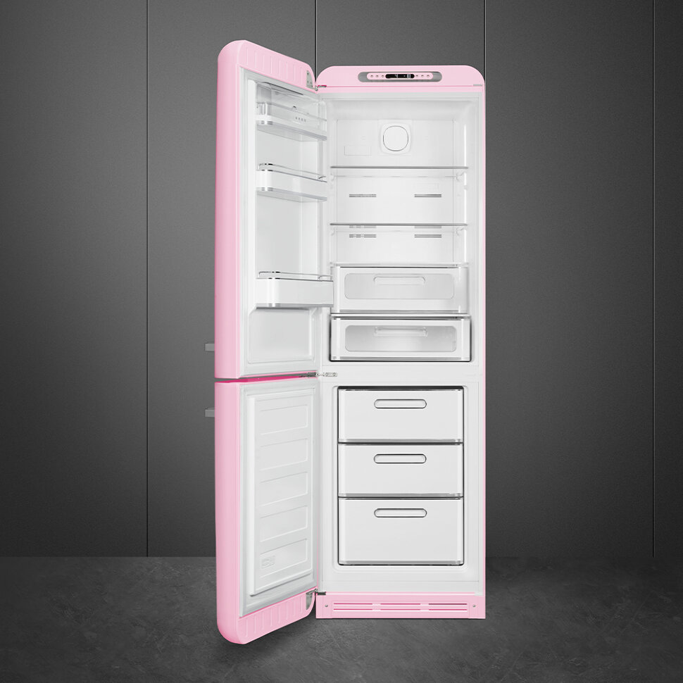 Холодильник SMEG FAB32LPK5 предназначен для кратковременного хранения различных готовых блюд, охлаждённых продуктов и напитков, а также для заморозки и длительного хранения замороженных продуктов и полуфабрикатов. Полки изготовлены из закалённого стекла, благодаря чему выдерживают большую нагрузку. Полки на дверцах выполнены из пластика. Данная модель идеально подойдёт для авторских интерьеров в уникальном стиле или для кухонь в классическом исполнении.