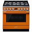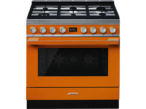 Варочный центр Smeg CPF9GPOR из серии Portofino выполнен в теплом оранжевом цвете. Конструкция включает наличие газовой варочной панели и электрического духового шкафа. Варочная поверхность имеет автоматический электроподжиг для быстрого зажигания пламени, а духовой шкаф оснащен функцией пиролитической очистки.