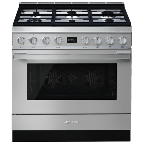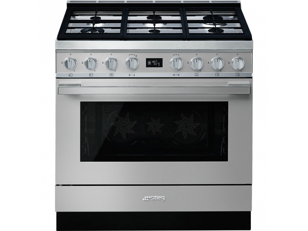 Варочный центр Smeg серии Portofino в цвете «нержавеющая сталь» имеет газовую варочную поверхность и электрический духовой шкаф. Варочная панель имеет 6 конфорок, одна из которых повышенной мощности 4.2 кВт. Духовка оснащена всеми необходимыми функциями, среди которых гриль, размораживание, нижний нагрев и конвекция, турбо и т.д. Четырехслойное остекление дверцы подразумевает очистку внутренней камеры при помощи пиролиза. Стекло легко демонтируется для очистки. Металлические направляющие расположены на пяти уровнях для максимально комфортного процесса приготовления блюд.
