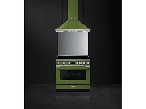 Варочный центр Smeg представлен в оливковом цвете и оснащен широким функционалом: 5 индукционных зон разного размера и 10 режимов нагрева позволят подобрать оптимальные условия приготовления для блюд любой сложности; функция Booster временно увеличит мощность выбранной конфорки для быстрого нагрева крупногабаритной посуды или кипячения больших объемов воды; пиролитическая очистка облегчит уход за камерой. Безопасность эксплуатации достигается за счет отключения при перегреве варочной поверхности и 4 стеклам, благодаря которым дверца почти не нагревается.